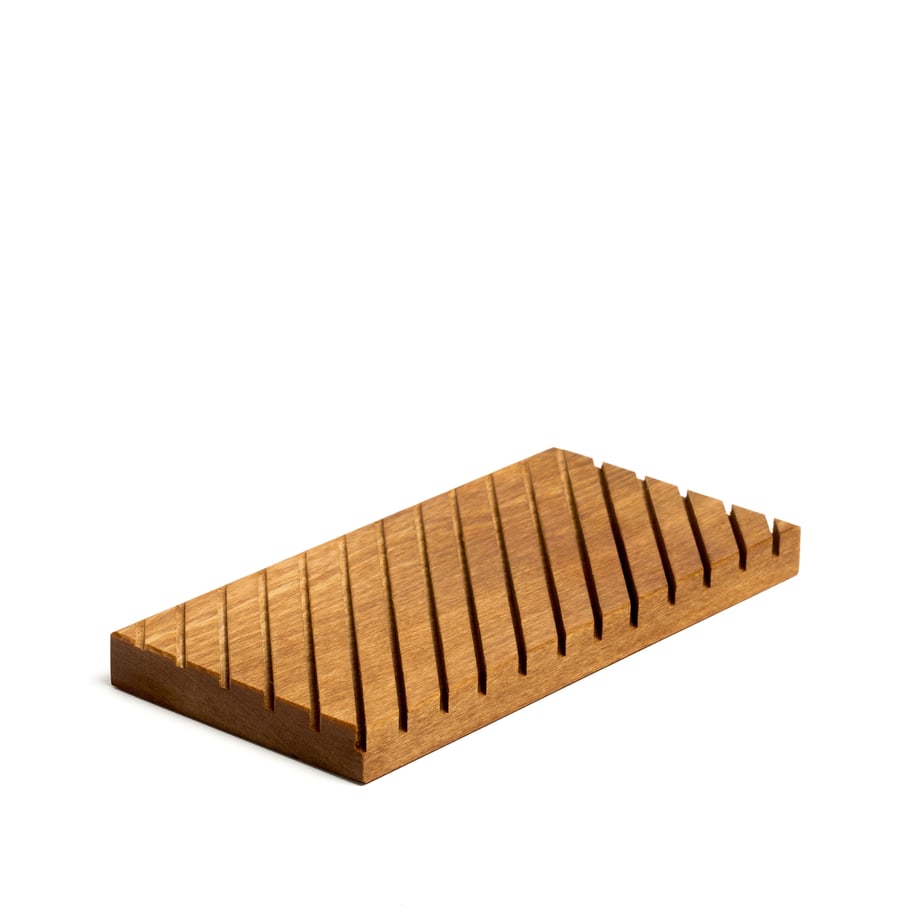 The rimu wood soap keeper is an upcycled piece of wood that was originally used as flooring but was then discarded.