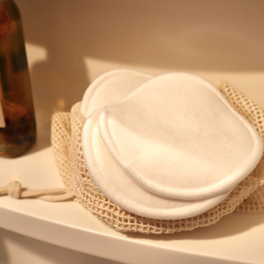 バンブーコットン12枚と洗濯用のコットンメッシュバッグのセットです。